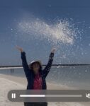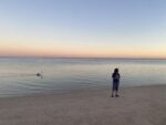 遠浅の水に足をつけたり、写真撮ったりする余裕あり。